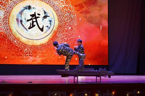 整齐划一的动作,铿锵有力的口号,激昂澎湃的歌声,恢弘豪迈的气势,半军管风采展示迎得了全体观众热烈掌声。军管部散打队的同学们意志如钢,超越自我的散打表演更是让台下观众连连叫好。